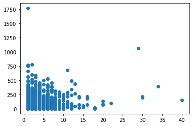 plt.scatter(ns_book7['번호'], ns_book7['대출건수'])