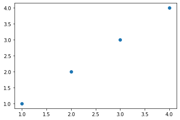 plt.scatter([1,2,3,4],[1,2,3,4])