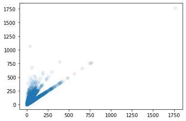 plt.scatter(average_borrows, ns_book7['대출건수'], alpha = 0.1)