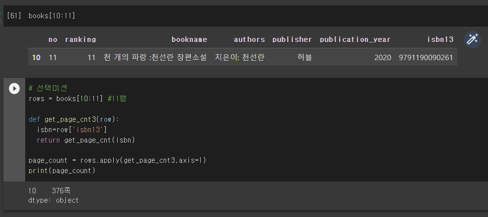 # 새 데이터 프레임의 isbn13열만 get_page_cnt함수로 전달